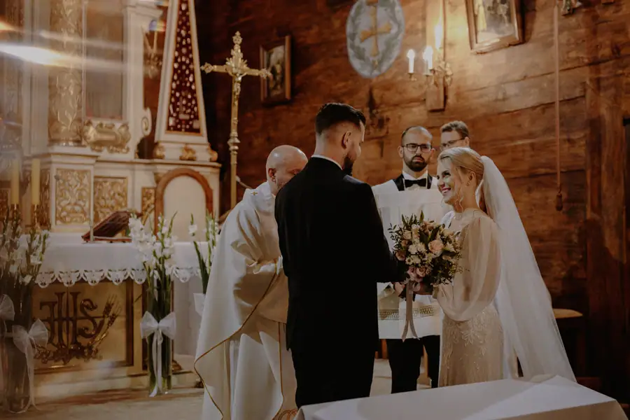 Śluby kościelne to jedne z tych uroczystości, które fotografujemy z wyjątkową przyjemnością. Powodów tego jest wiele. Między innymi dlatego, że ich przebieg jest bardzo uroczysty i podniosły. W kościele najczęściej panują spokój i powaga, ale nie tylko, bo oczywiście są też chwile radości i wzruszenia. Składanie przed Bogiem wzajemnej przysięgi miłości i wierności do śmierci jest momentem szczególnym, ale również stresującym. Dzięki temu na twarzach nowożeńców ujawniania się tak wiele pięknych emocji, od łez szczęścia po euforię. Wzruszenie i podekscytowanie dostrzegamy nie tylko na obliczach Młodej Pary, ale również ich rodziny i bliskich, którzy także nie ukrywają swoich uczuć. Cieszy nas możliwość uwiecznienia tak wielu pięknych chwil i przeżyć. Kościoły to również zjawiskowe budowle, które zachwycają nas swoim urokiem i atmosferą. Często jedynie przy odrobinie dekoracji stają się miejscem niezwykłym, które podkreśla te ważne chwile i wprowadza nas w odpowiedni nastrój. Tak było i w tym przypadku, ponieważ ceremonia miała miejsce w zabytkowym Sanktuarium N.M.P. w Tomaszowie Lubelskim, które słynie właśnie ze swojej wiekowej historii i pięknej architektury.