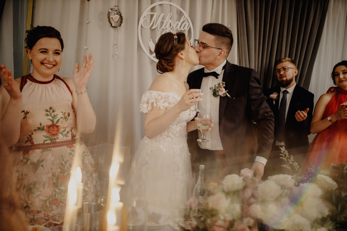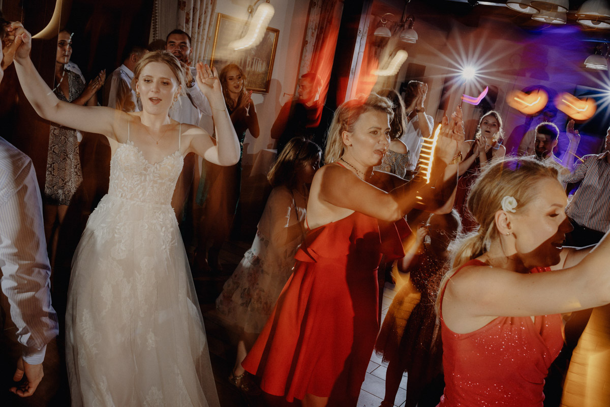 Podczas zabawy weselnej dzieje się niezwykle dużo. Każde wesele ma swoją energię, na którą wpływa wiele przeróżnych czynników. Aby dobrze oddać atmosferę trzeba wykazać się szybkością, elastycznością i umiejętnością wtapiania w tłum, oraz bycia tam gdzie coś się dzieje. Tutaj chwile lecą niezwykle szybko, a sytuacje zmieniają się bardzo dynamicznie. Aparat/kamera powinny być nieustannie w pogotowiu. Różnorodne oświetlenie daje również możliwości do eksperymentowania i ustrzelenia artystycznych, malarskich kadrów.